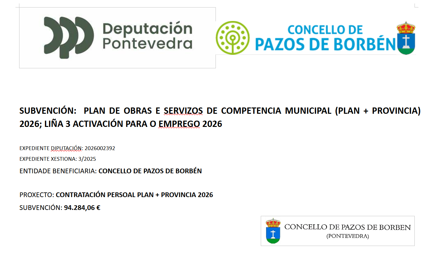 Contratación nove peóns de obras públicas subvencionado polo Plan + Provincia 2026 da Deputación de Pontevedra