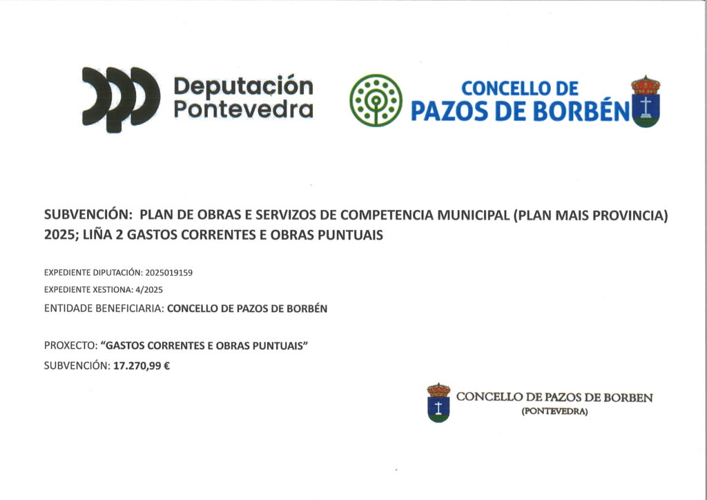 PLAN + PROVINCIA LIÑA 2PLAN DE OBRAS E SERVIZOS DE COMPETENCIA MUNICIPAL (PLAN MAIS PROVINCIA) 2025; LIÑA 2 GASTOS CORRENTES E OBRAS PUNTUAISPLAN + PROVINCIA LIÑA 2